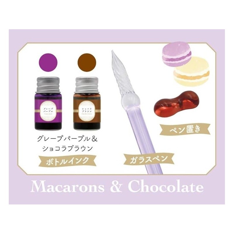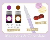 Glass Pen Afternoon Tea, Macarons and chocolate, with Pen Tray and 2 bottled inks