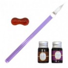 Contents: Glass pen, pen tray, two bottles of glitter ink (7ml) (chocolate brown and grape purple)