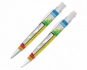 This matching pen and pencil gift set operates with a simple knurl twist-top mechanism for smooth, reliable performance. The pen is fitted with a rollerball refill for fluid writing, while the pencil uses 1.15 mm HB lead and features an oversized eraser on top—perfect for correcting the occasional miscalculation. Each pencil is packaged in a graphic tube and includes extra lead and replacement erasers.