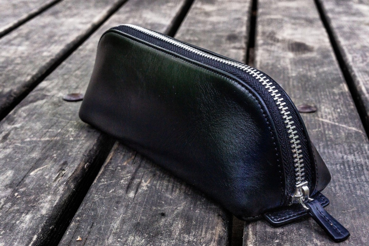 Galen XLarge Zipper Leather Pencil Case - Black