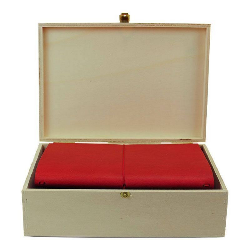 It includes a grand voyageur [xl] (15 x 21cm) with four refill notebooks, a card holder [xl] and a ribbon kit [xl], which we pack with care in a beautiful wooden box from Austria.