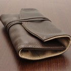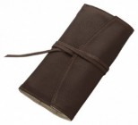 It has a flap to prevent pens from falling out or clips from touching each other when rolled up. It is secured with a leather string.