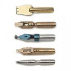 5 different nibs in blister packaging: pen nib, decorative nib, poster nib, ribbon nib, oblique nib.